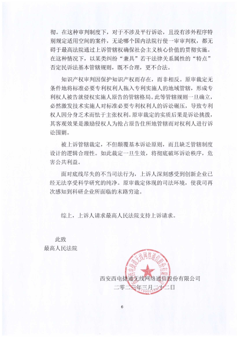 ※基于西安西电捷通无线网络通信股份有限公司合规指南,公开以下涉西电捷通标准必要专利的判决、裁定等法律文书。